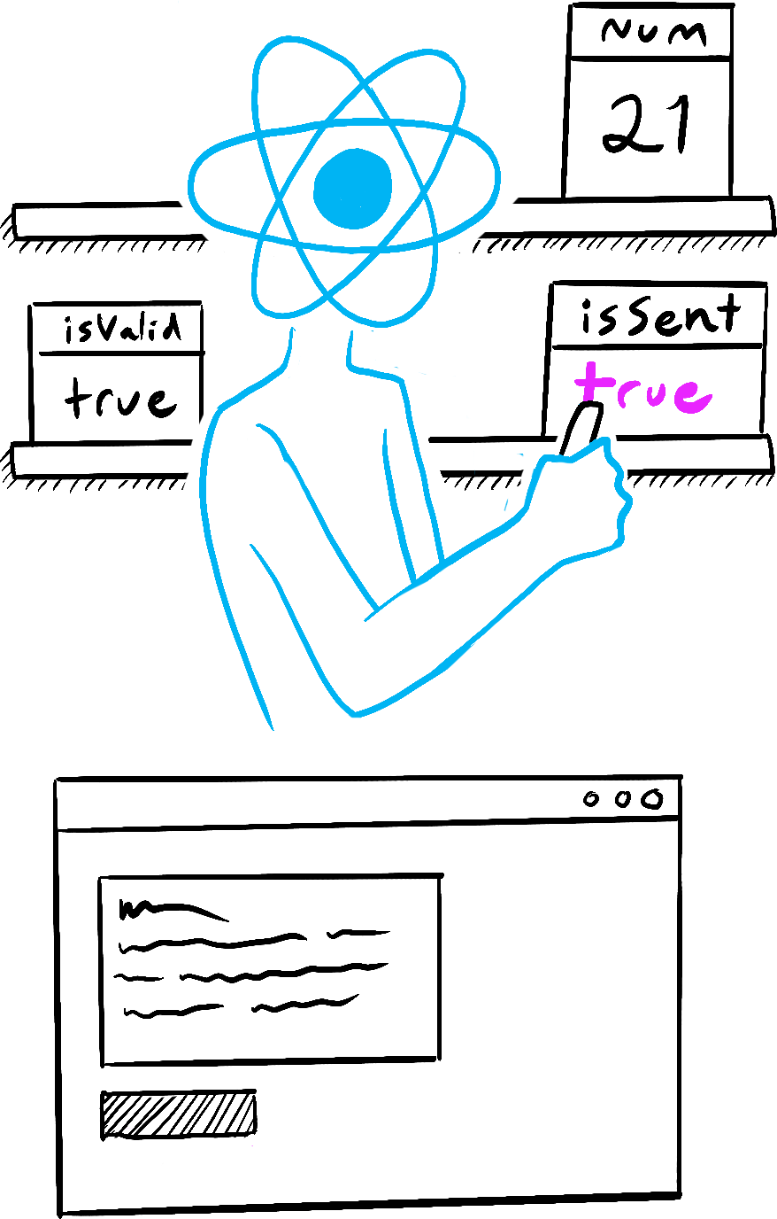• React 将 state 存储在组件之外,就像在架子上一样。